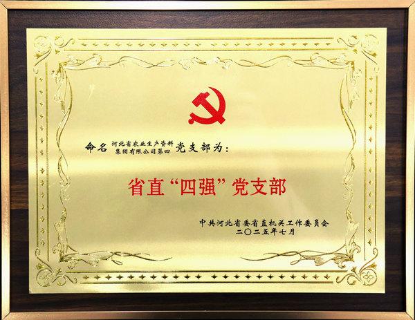 本網訊    近日,中共河北省委省直機關工作委員會發布《關于命名2025年省直機關“四強”黨支部的決定》,集團公司第四黨支部榮獲省直“四強”黨支部稱號。